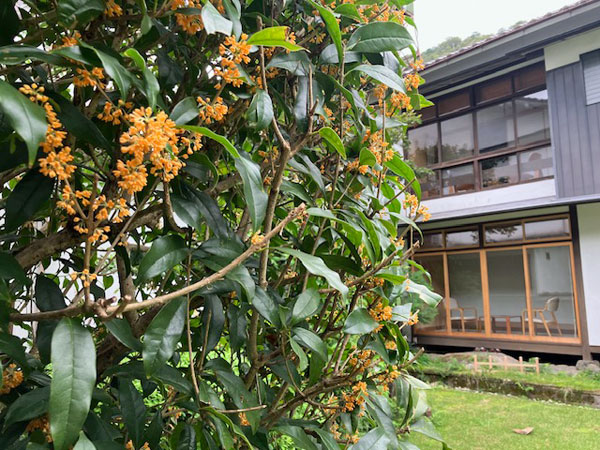中庭のキンモクセイが満開です。屋根を飛び越え、玄関先までその芳しい香りが漂って参ります。