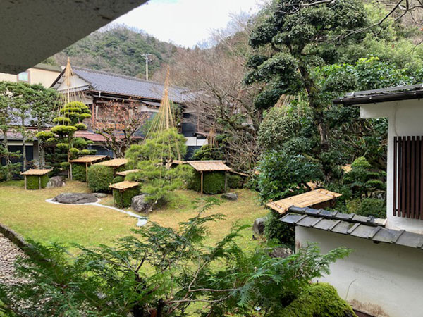 意外に思われる方も多いと思いますが、城崎温泉には雪は積もっていません。中庭も雪景色ではありません。