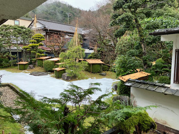一方、城崎温泉は1月2日の降雪がおさまった後は雪が降らず、一時は15cmほど積もっていた中庭の雪は、現在は一部にうっすら積もっている程度になっています。
